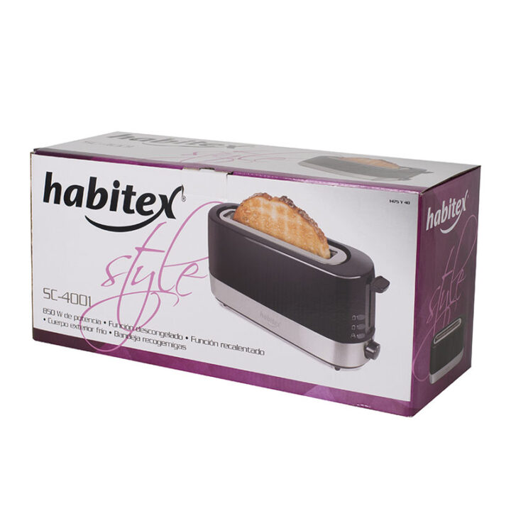 Con este tostador de ranura larga podrás descongelar el pan gracias a su función de descongelado y mantener la tostada caliente todas las mañanas mientras preparas el desayuno. Podrás regular el nivel de tostado en todo momento y cuando estén listas saltarán automáticamente. El tostador HABITEX tiene el cuerpo con toque frío para evitar quemaduras e incluye una bandeja para recoger las migas. Asimismo tiene un alojamiento para guardar el cable. Tiene 3 años de garantía. Viene presentado en caja.