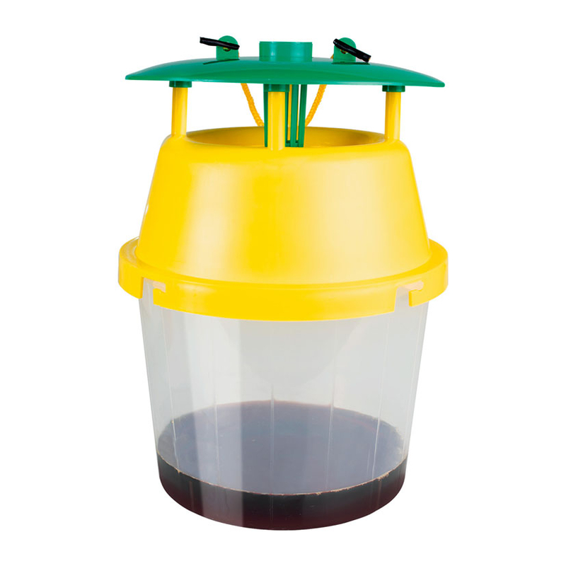 Esta trampa está diseñada especialmente para la captura de la avispa asiática o velutina. Está fabricada en polímero de plástico resistente a los rayos UV. Tiene una gran resistencia a la intemperie, es de larga duración y dispone de una gran capacidad. Esta trampa debe ser utilizada junto con un líquido atrayente de la avispa velutina. Se presenta en una caja.