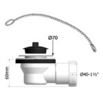 Válvula para lavabo o bidé 70 mm de 1 1/2 x 32. Fabricado en acero inoxidable polipropileno y PVC. Viene presentado en una bolsa. Cumple con la norma ISO 9001:2008.