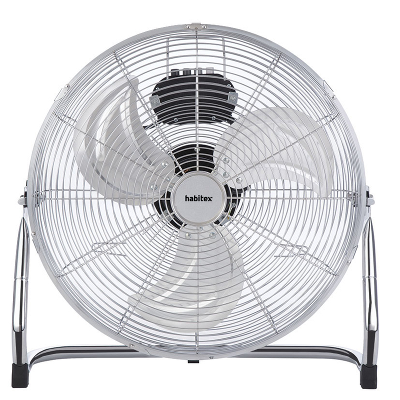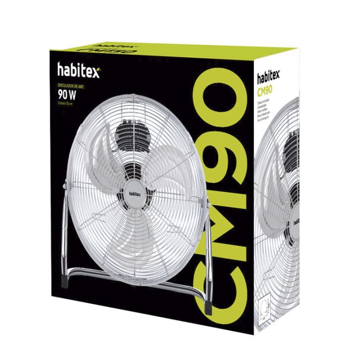 Este ventilador posee un cabezal inclinable y una base muy estable y antideslizante. Las hélices están fabricadas en metal y dispone de un asa de transporte para que puedas trasnportarlo fácilmente. Su potencia de 90W aporta un caudal de aire de 113,16 m3/min. Viene presentado en caja y tiene 3 años de garantía.