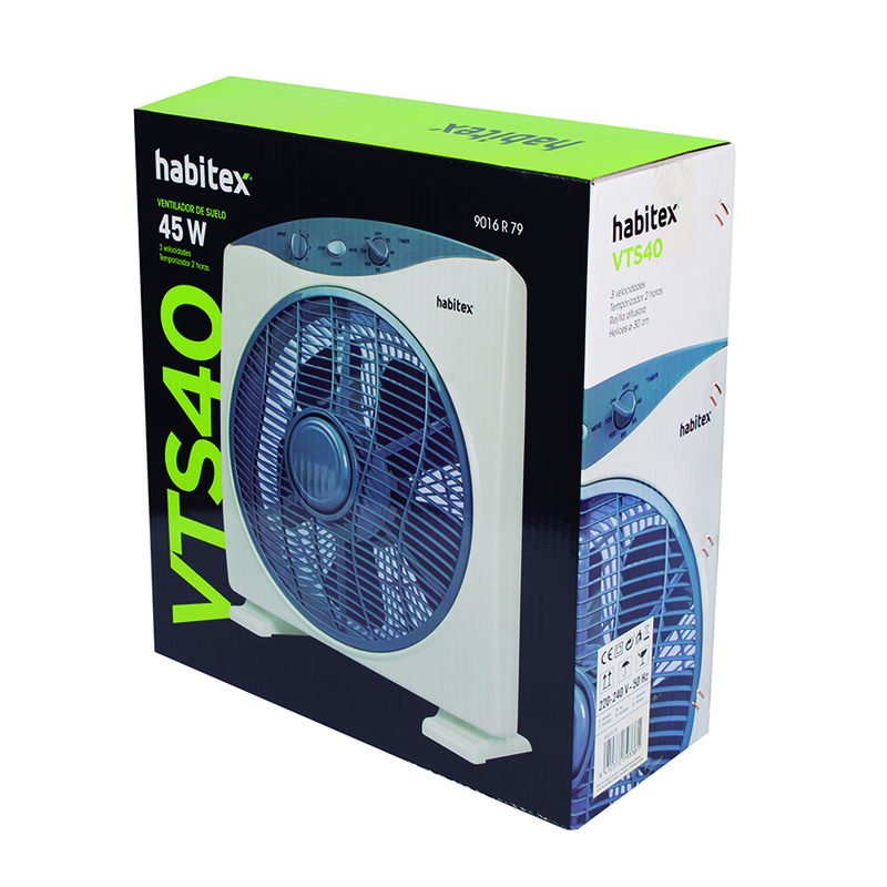 Este ventilador está equipado con un cabezal oscilante a través de su rejilla multidireccional. Tiene una potencia de 45 W y un temporizador de 2 horas. Cuenta con 3 velocidades. Lo podrás transportar fácilmente de un lugar a otro gracias al asa de transporte que incorpora. Viene presentado en caja y tiene 3 años de garantía.