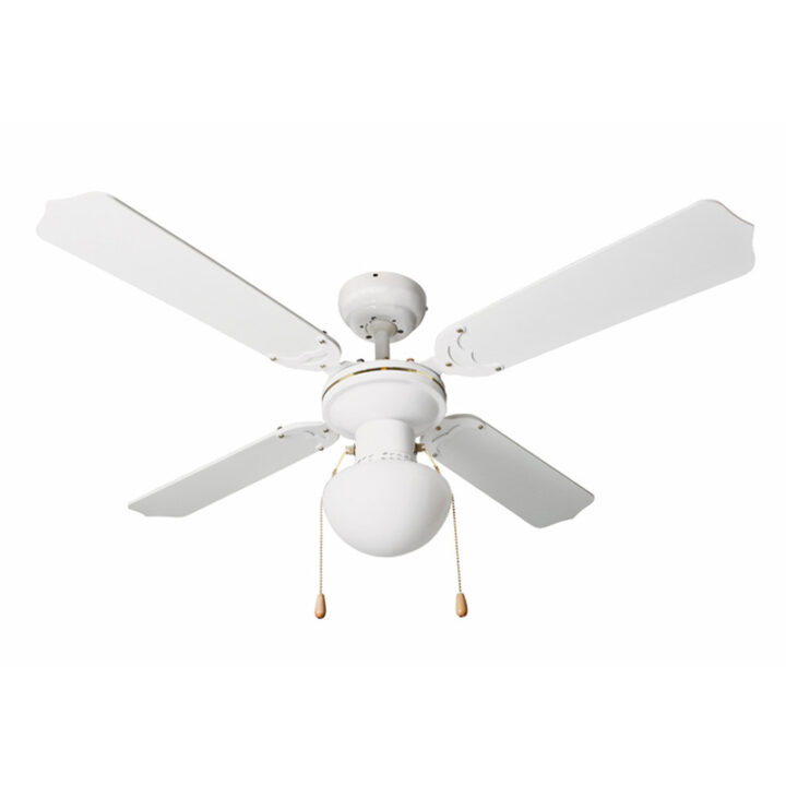 Este ventilador de techo incluye además de las aspas para generar un caudal de aire, una lámpara E27 máx. 60 W (no está incluida).