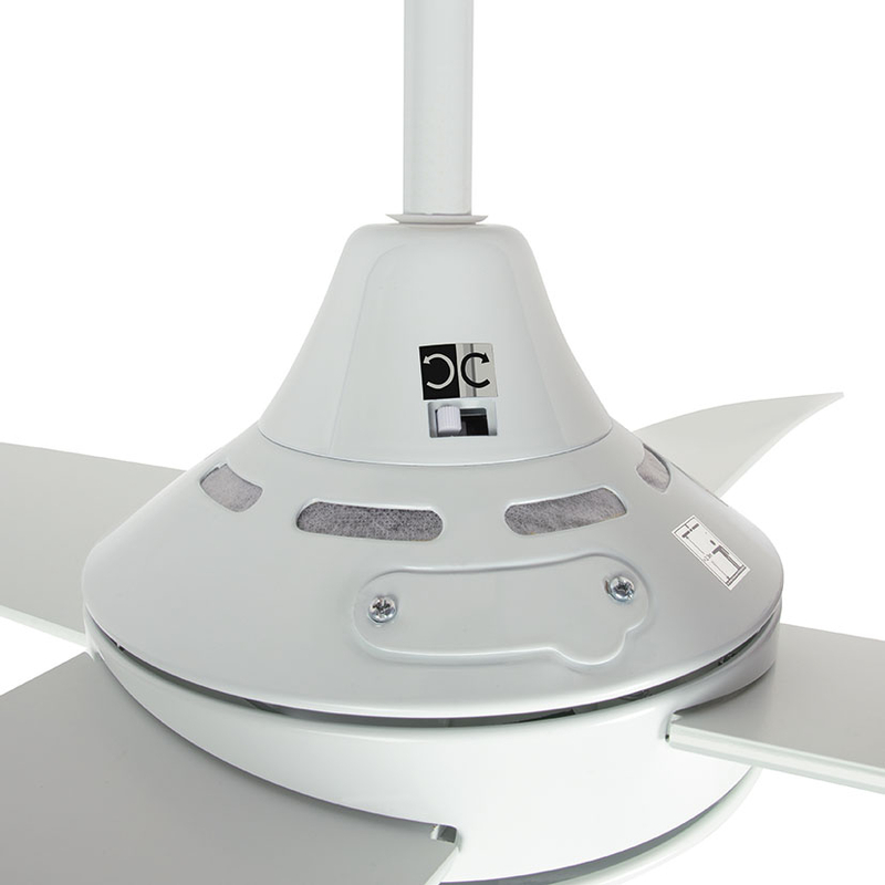 Este sencillo ventilador de techo incluye 4 hélices de madera.