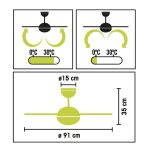 El ventilador de techo HABITEX VTR-5000 tiene una potencia de 18 W con 5 velocidades. Está equipado por un motor DC muy silencioso. Tiene 4 hélices reversibles blanco/haya, con doble giro, hacen un diámetro total 91 cm. Además tiene un temporizador de 8 horas. Lo podrás instalar de una manera muy fácil en cualquier estancia. Con el mando a distancia que incorpora, te será más fácil manejarlo desde cualquier punto de la estancia. Una de las ventajas de los ventiladores de techo es que hacen de elemento decorativo en tu hogar y a la vez son saludables, ya que no provocan sequedad de garganta ni de ojos, ni resfriados debido a corrientes de aire excesivamente frías. Luz Led con intensidad regulable 22W en modo cálido, neutro o frío. Viene presentado en caja y tiene 3 años de garantía.