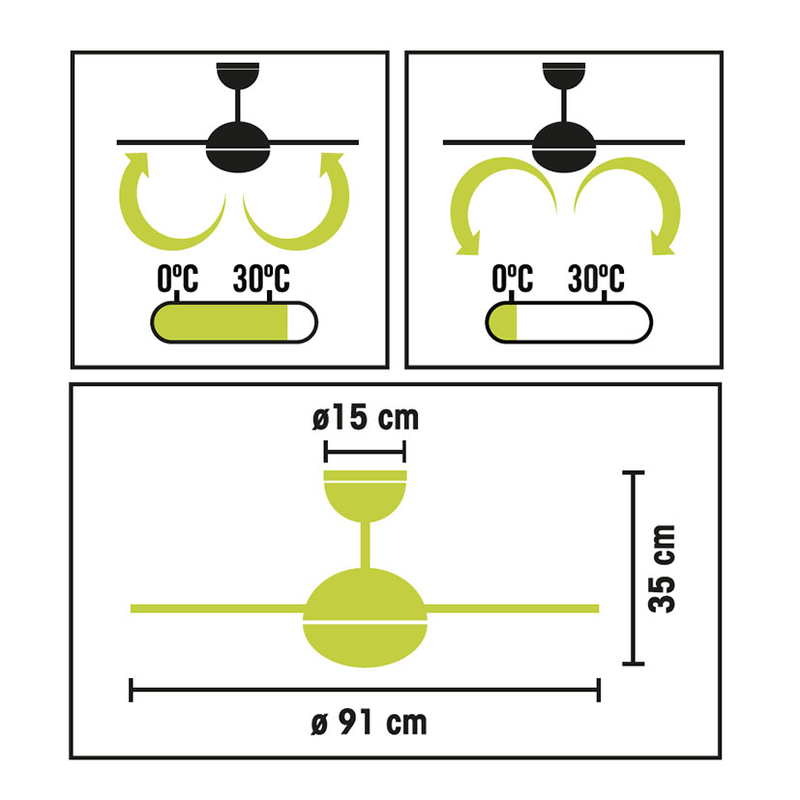 El tipo de motor del ventilador determinará su consumo eléctrico y el ruido que genera. Si vas a utilizar el ventilador durante muchas horas elige un aparato con motor DC (corriente continua), consumen un 70% menos de electricidad que los que funcionan con motor AC (corriente alterna). Los motores DC son muy silenciosos, ideales para el funcionamiento nocturno y pueden programarse para que se apaguen automáticamente. Si además eliges un ventilador con luz integrada, el ahorro energético será mayor si incorpora un plafón LED en lugar de portalámparas para bombillas E14 o E27.
